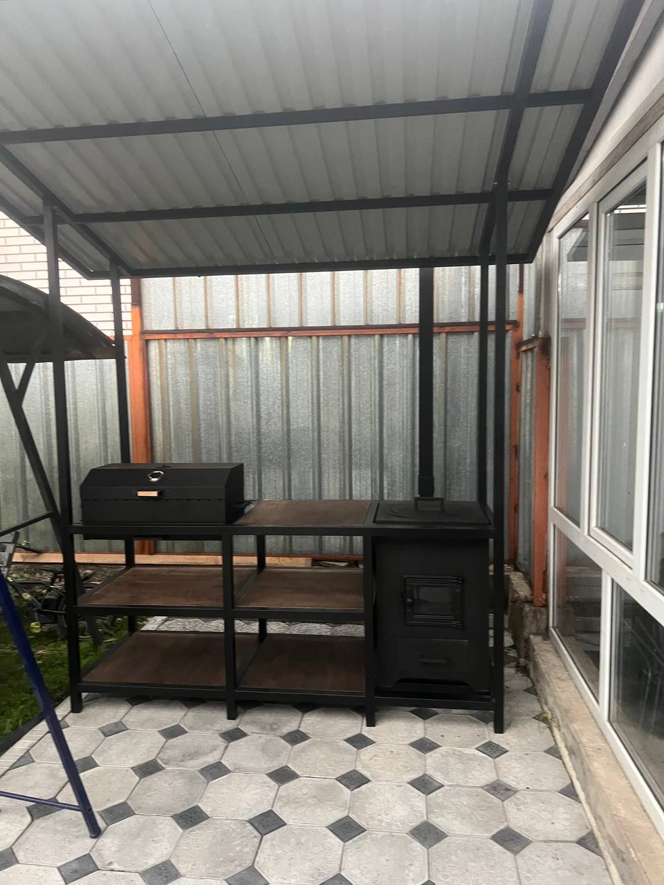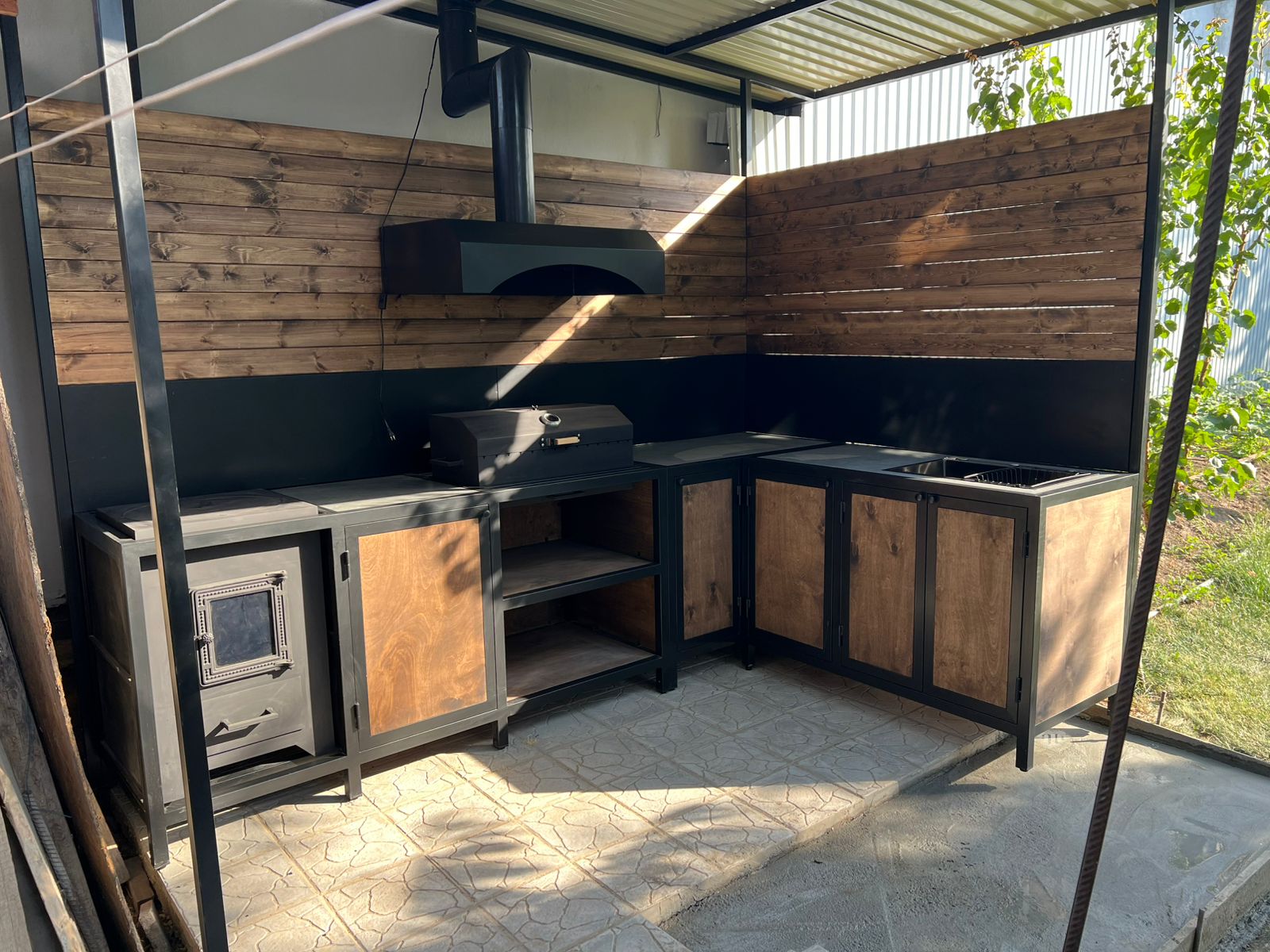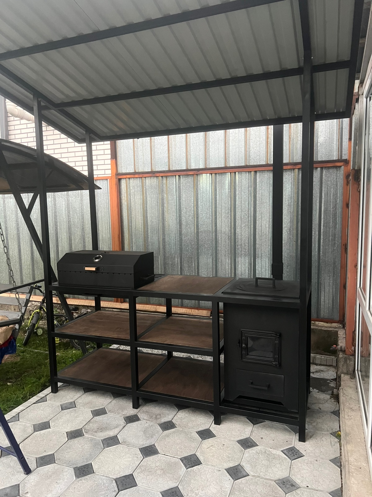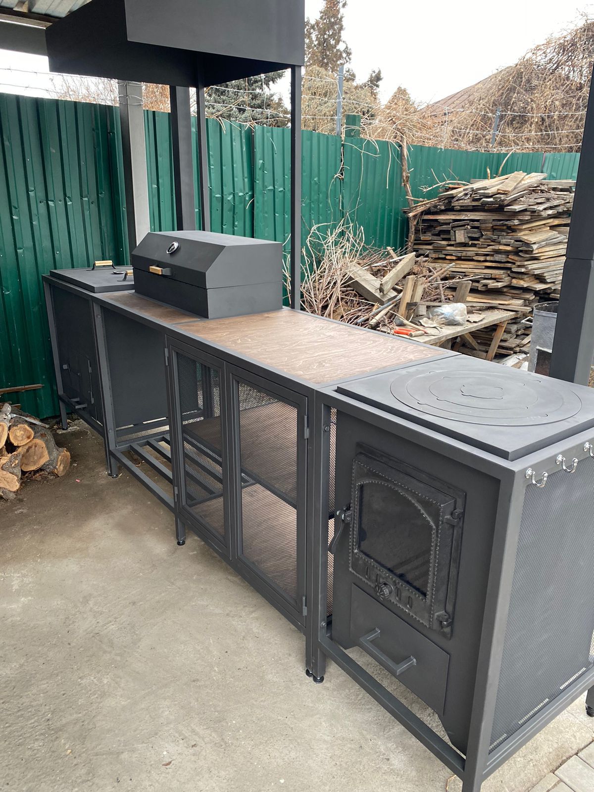 Полноценная уличная кухня — готовка, вода и огонь в одном комплексе.
