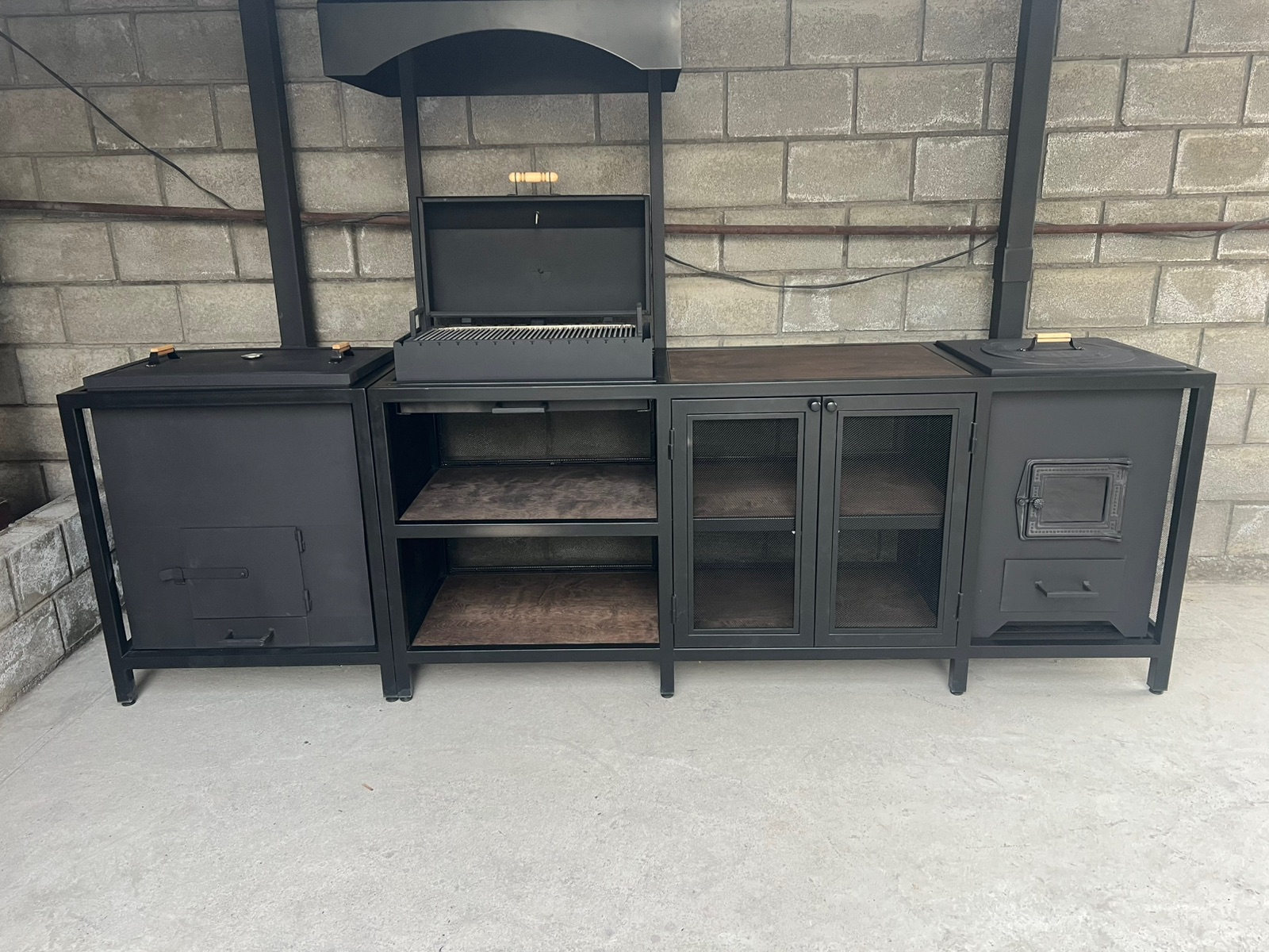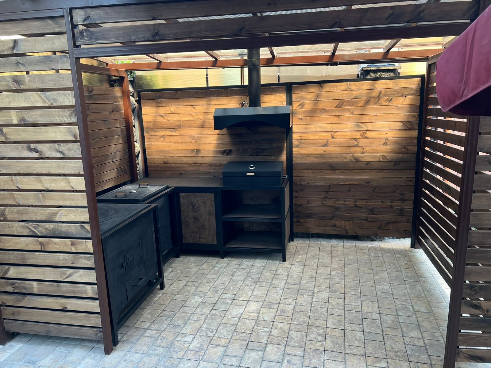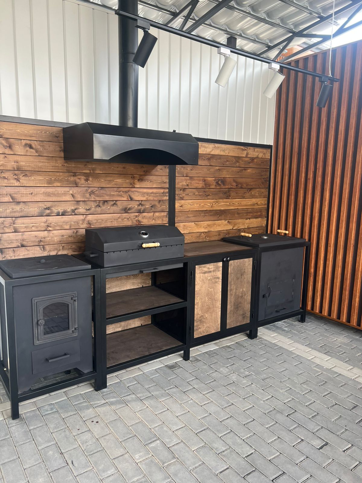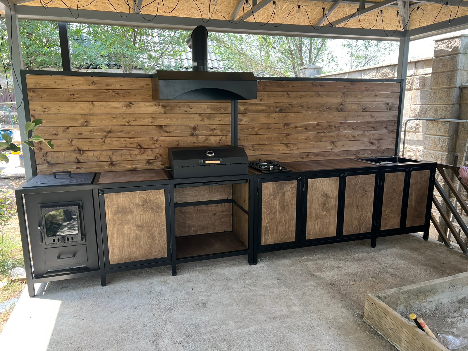 Полноценная уличная кухня — готовка, вода и огонь в одном комплексе.